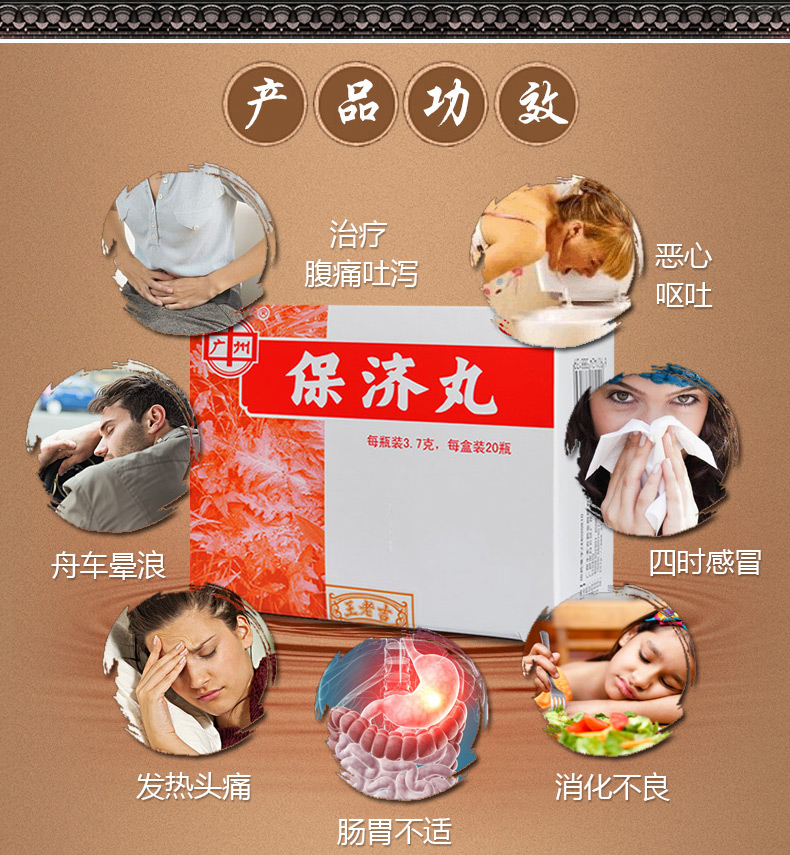 王老吉保濟丸20瓶/盒 惡心嘔吐頭疼拉肚子藥腹痛腹瀉祛濕